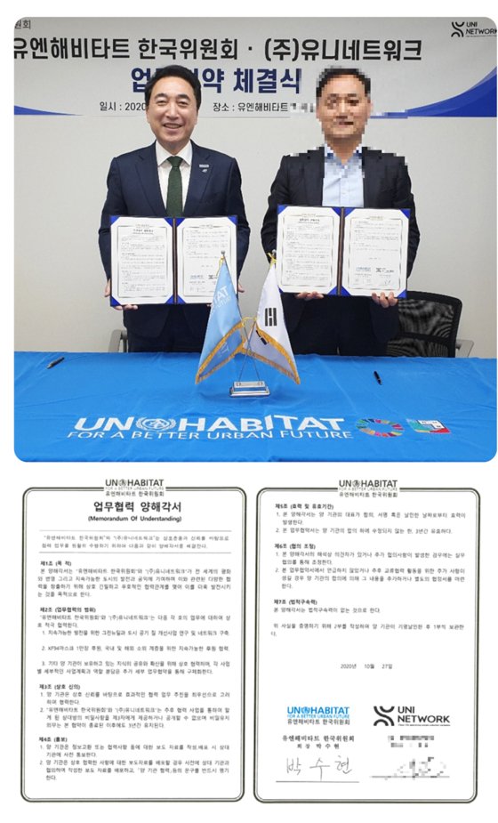 퓨리에버 상장 6일만에 열린 이 포럼은 각종 코인 전문 매체를 타면서 초기 급등을 이끄는 자극제로 기능했다. 유니네트워크는 상장을 앞둔 2020년 10월 박수현 전 문재인 정부 청와대 대변인이 회장을 맡았던 유엔해비타트 한국위원회와 업무협력 양해각서를 맺기도 했다. “지속가능한 발전을 위한 그린뉴딜과 도시 공기 질 개선사업 연구 및 네트워크 구축” 등의 내용이 양해각서에 담겼다. 박 회장과 유니네트워크 이모 의장이 이 문서를 들고 찍은 기념사진은 상장에 쓰인 백서(white paper)에 실렸다. 경찰은 이 코인 발행 및 상장 과정 전체에 사기 혐의가 농후하다고 보고 전방위로 수사를 확대 중이다.
